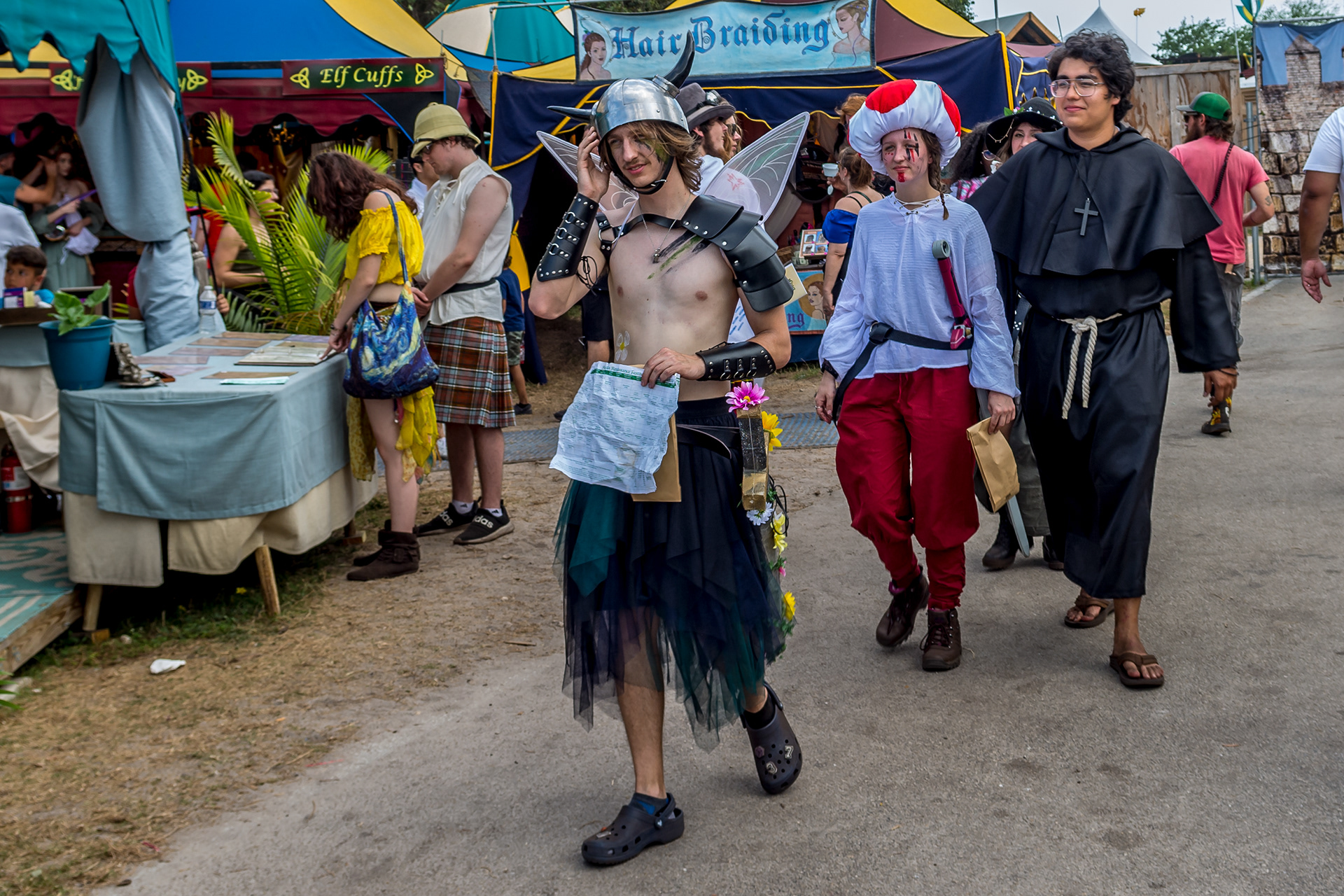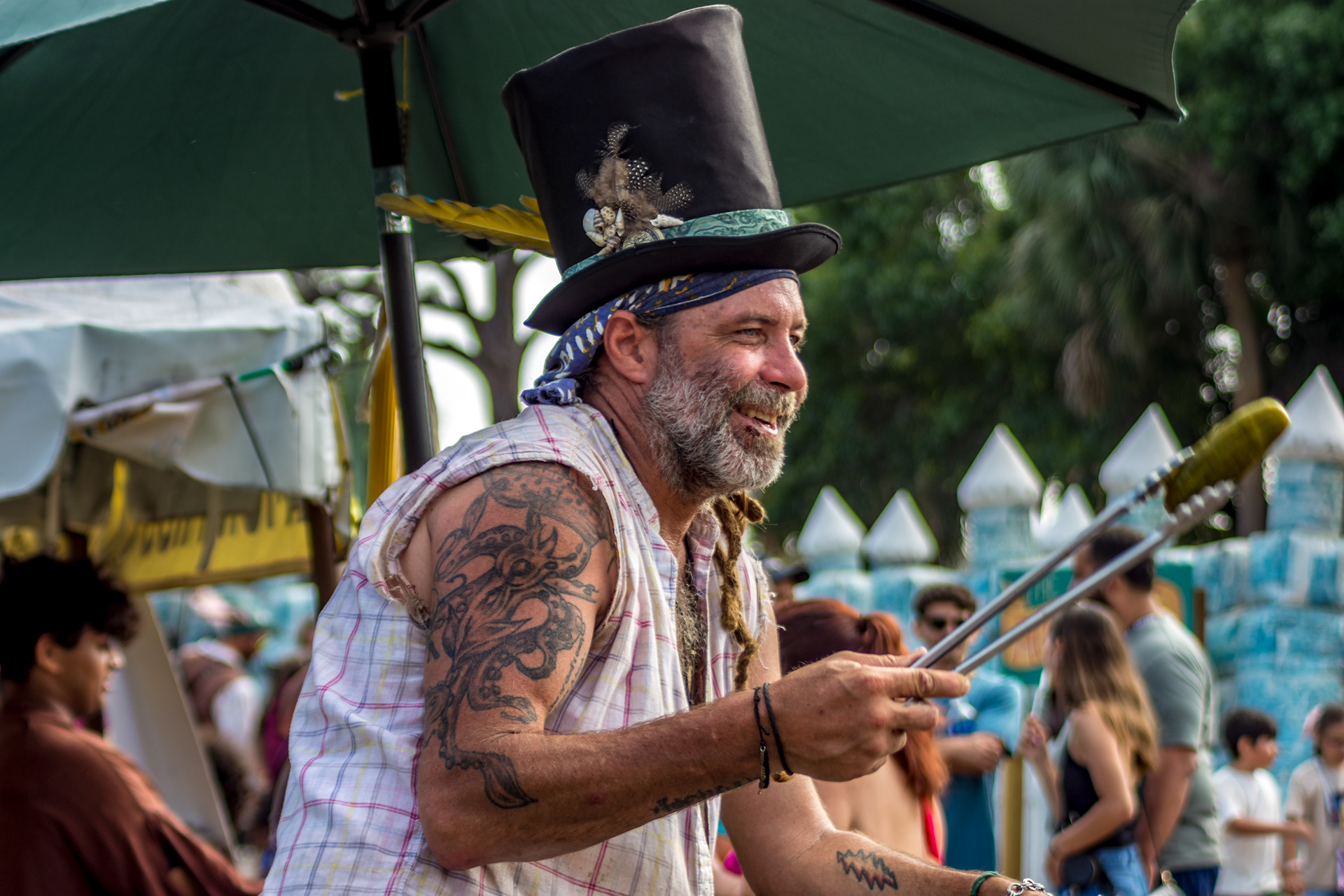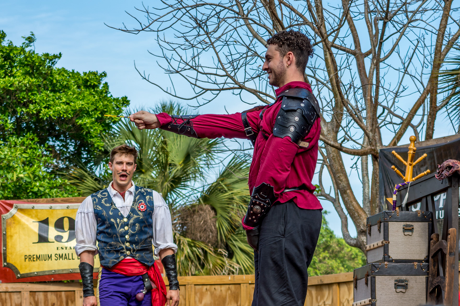 A beautiful and fun festival. Many attractions with hundreds of artisans and artists, not only on the twelve stages, but all around them! Sword fighters, magicians and much more! “The whole world is a stage” in the village of Kimmendale. Heroic knights, on their noble horses, attack with thunderous speed in exciting battles. Various pubs and games of chance and skill that challenge young and old, such as axe throwing, archery, tests of strength, fencing and much more! There is so much to see in this adventure that is the Florida Renaissance Festival! It's amazing to see people participating in their costumes... At this festival, the attraction is the people.